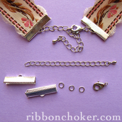I have a selection of supplies and findings for making ribbon choker necklaces and bracelets in my ArtFire shop: Findings, pliers and hardware kits for ribbon choker necklaces and ribbon bracelets
